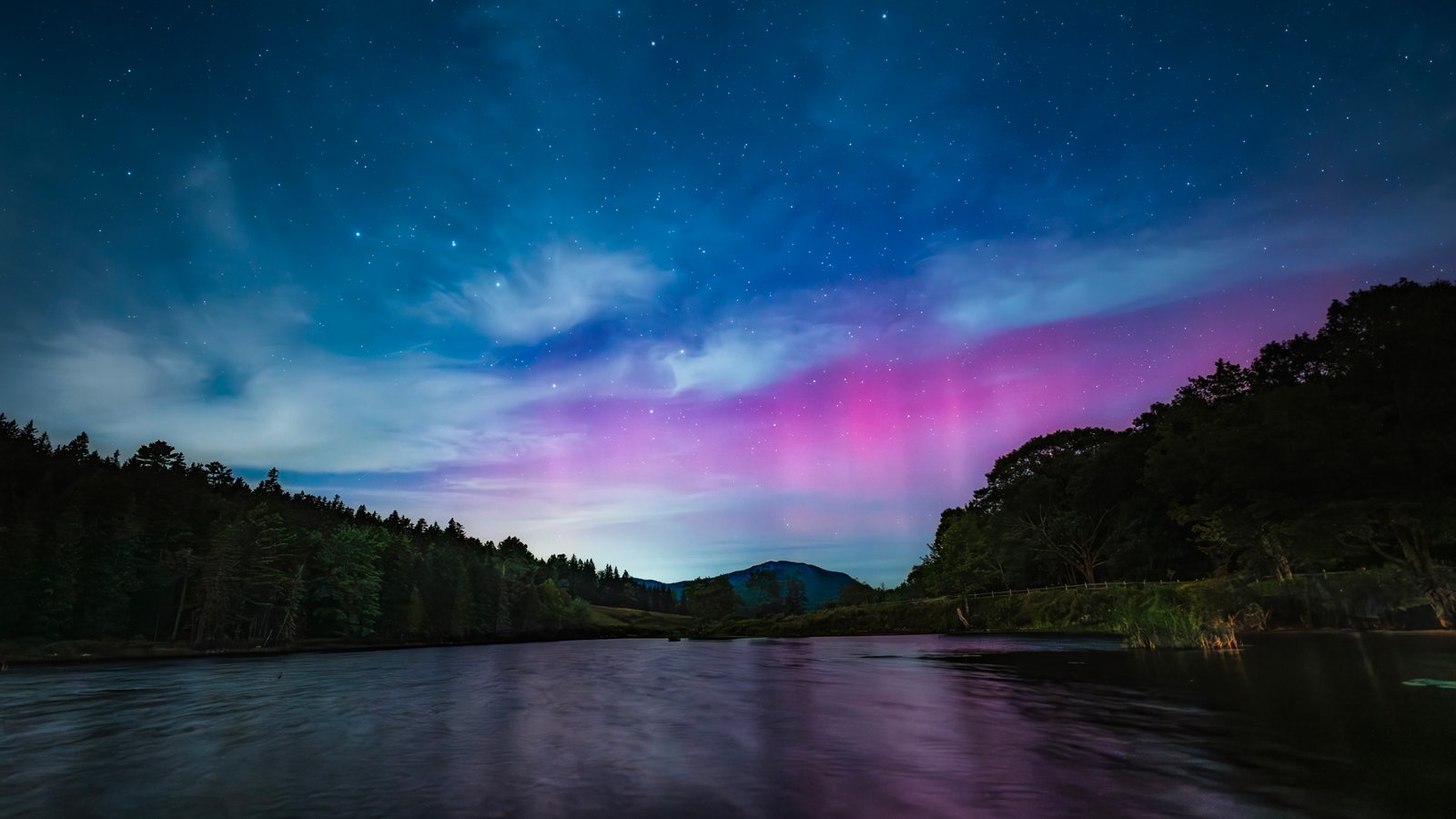Shop stunning fine art prints of the Northern Lights (Aurora) over Acadia National Park. A rare photo of the magenta and purple glow over a Maine landscape.