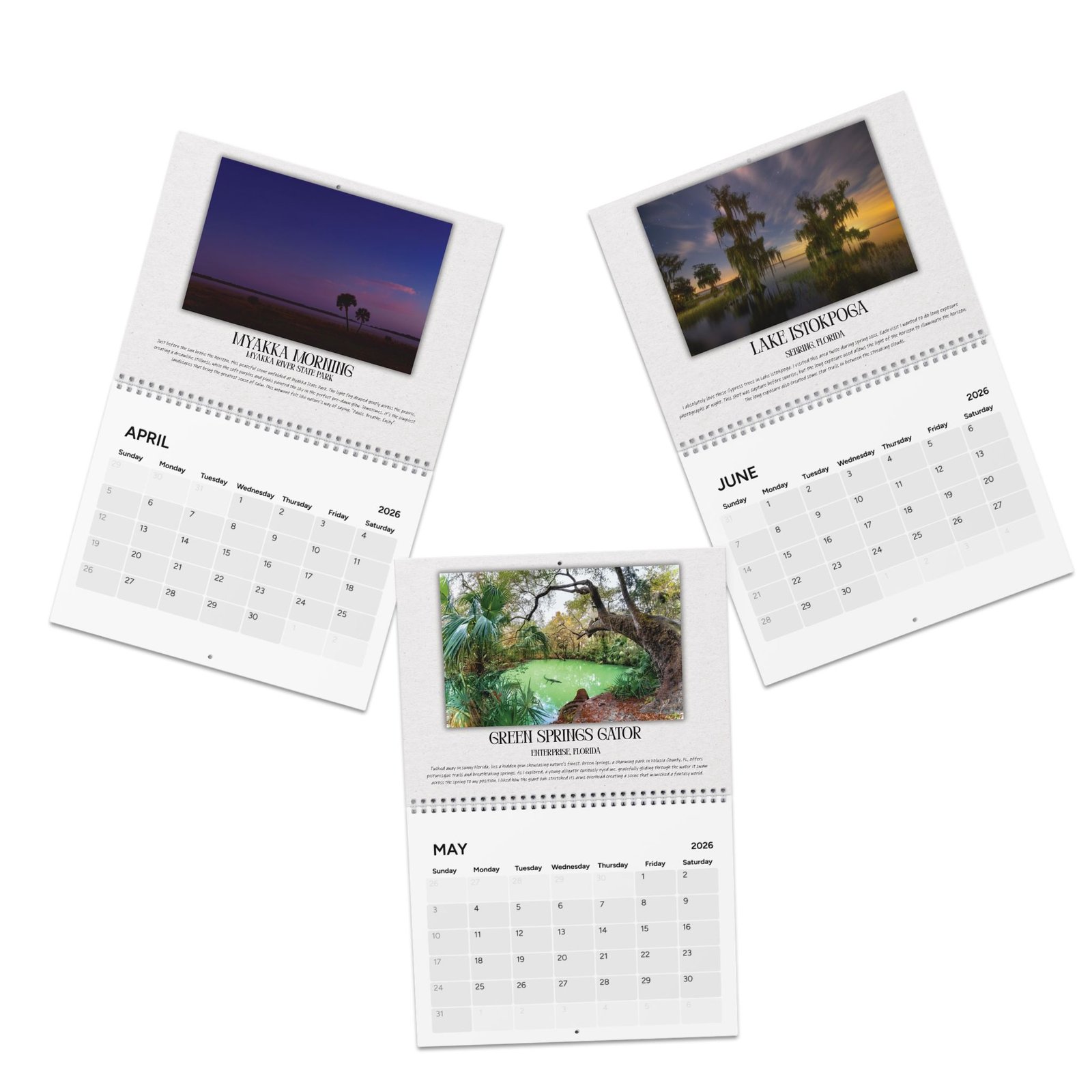 2026 Florida 12-Month Photo Calendar featuring high gloss landscape and wildlife photography from around Florida